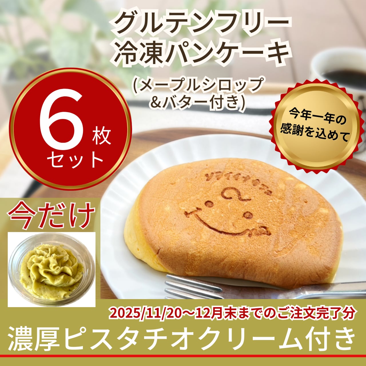 【今だけピスタチオ付き】お得な6枚セット グルテンフリー 米粉のふわふわパンケーキ(冷凍便・バター&メープルシロップ付き)